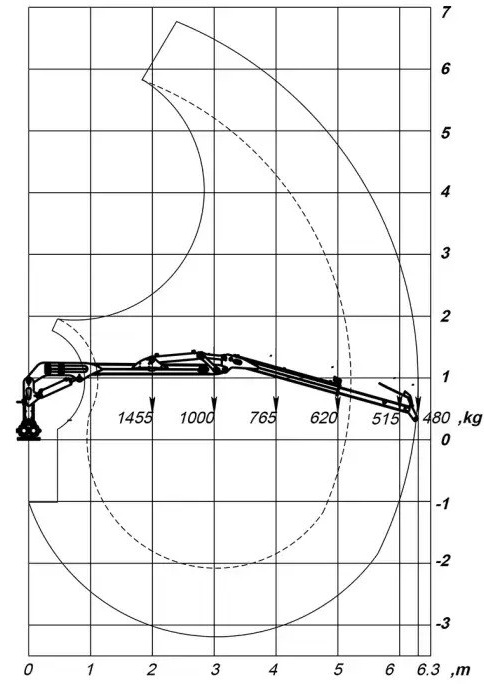 Pohybový diagram hydraulickej ruky Farma C 6,3 G2 nájdete po kliknutí na nasledujúci odkaz: Pohybový diagram Farma C 6,3 G2